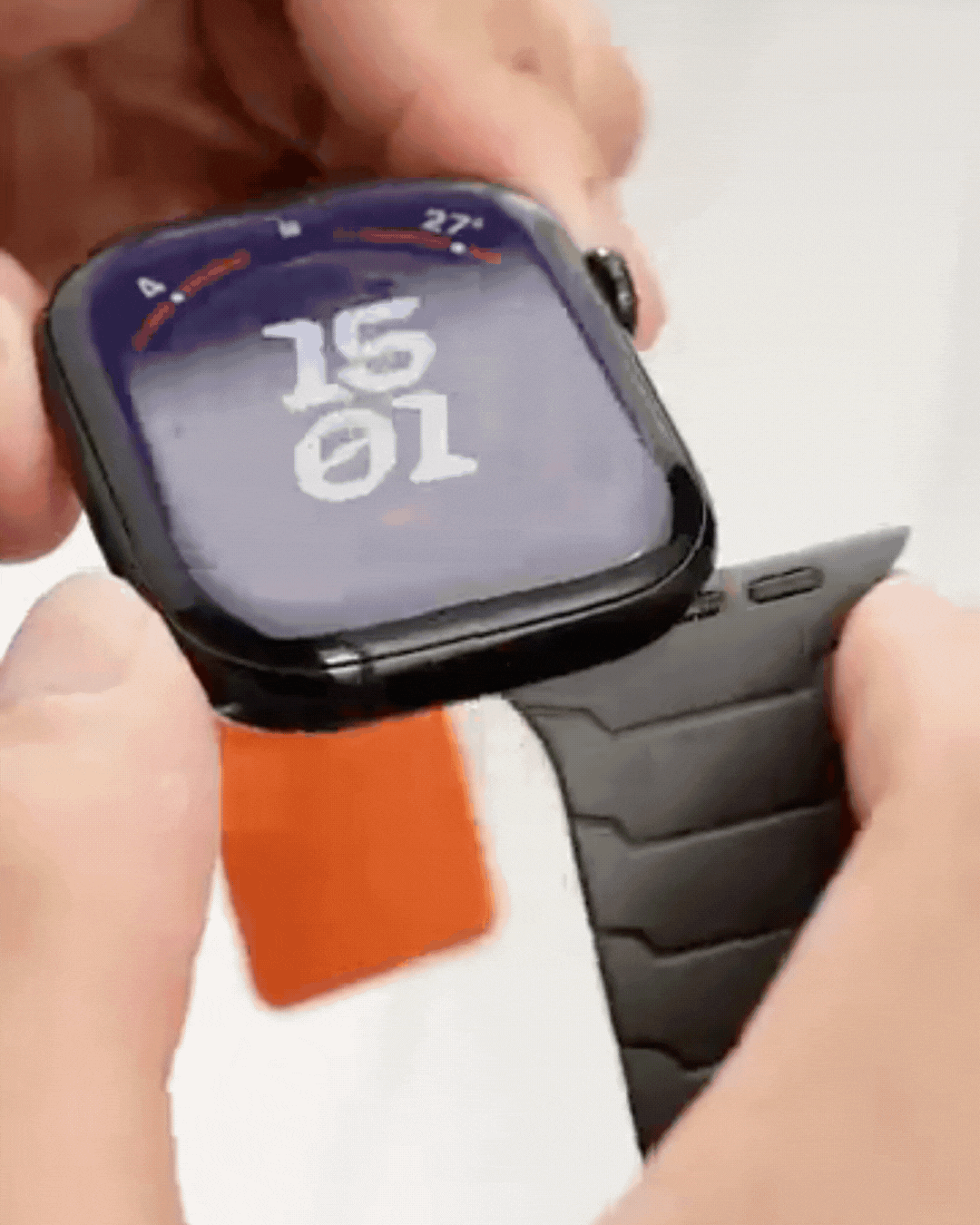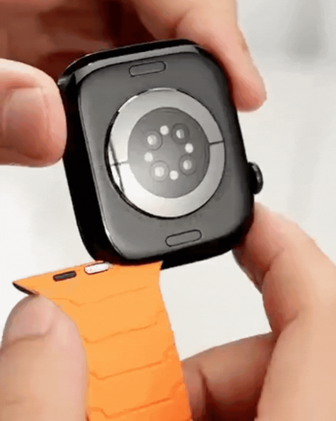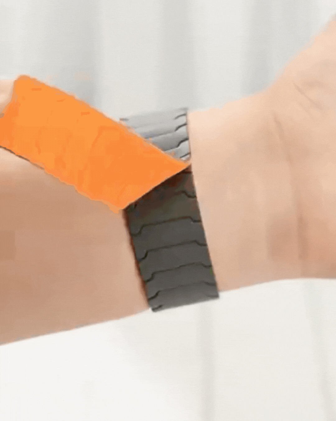 Our Titan Apple Watch Band features a magnetic loop closure that provides a secure and easy way to fasten the band without traditional buckles or clasps.